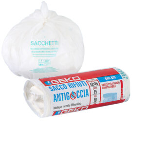 Sacchi per rifiuti organici Sac Bio – 42 x 45cm – 10 L – 12 micron – bianco – Geko – rotolo da 15 sacchetti