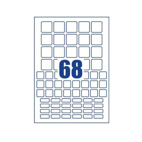 Adesivi antimicrobici – permanenti – quadrati misti – 68 et/fg – 10 fogli A4 – poliestere – trasparente – Avery