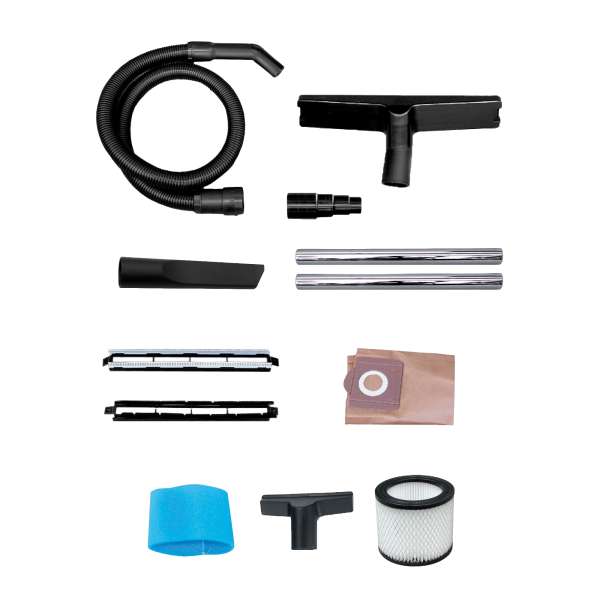 Aspirapolvere e liquidi semiprofessionale WTP 50XE con filtro lavabile, motore silenziato, doppio isolamento elettrico. Sistema aspirante con raffreddamento by-pass. Vano portaccessori. Fusto in acciaio inox. Porta cavo elettrico, 4 ruote pivottanti • Presa per elettroutensili (max 2200 W) con presa elettroutensile 2200 W sincronizzata dell’aspiratore. Tubi di prolunga in acciaio. Cavo e lettrico 5,5m e tubo flex 5m. Potenza: 1400W/230 V~50 Hz. Dimensione: 76x45x45cm. – 40028-00008