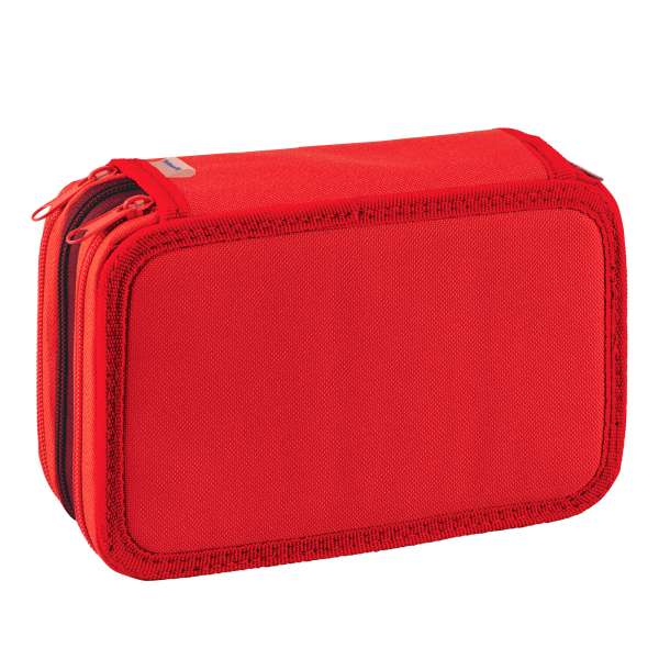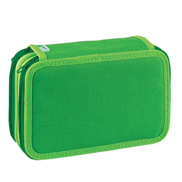 Astuccio a 3 scomparti in tessuto colorato dotato di zip con verso di apertura alternato. Corredato di tutto il materiale necessario per la scuola a marchio Pelikan: 18 matite colorate, 18 pennarelli Colorella Star, 2 penne a sfera Hang stick, 1 matita HB, 1 righello flessibile, 1 forbice, 1 gomma AL30, 1 temperamatite in metallo. Assortimento in 6 colori assortiti in un pratico display da banco – 400208880