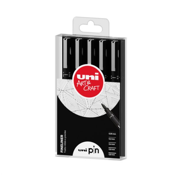 Astuccio Pin fineliner – nero – Uni Mitsubishi – conf. 5 pezzi