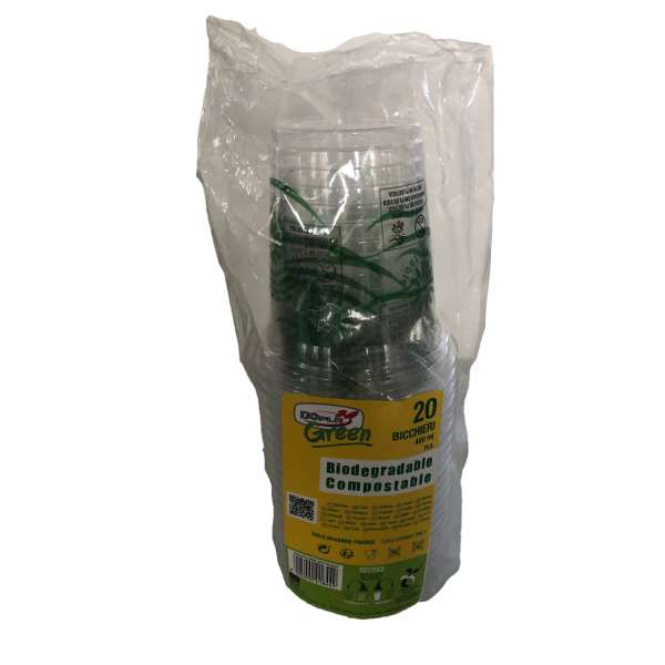 Bicchieri in PLA (acido polilattico). Colore trasparente. Adatto bevande fredde.
