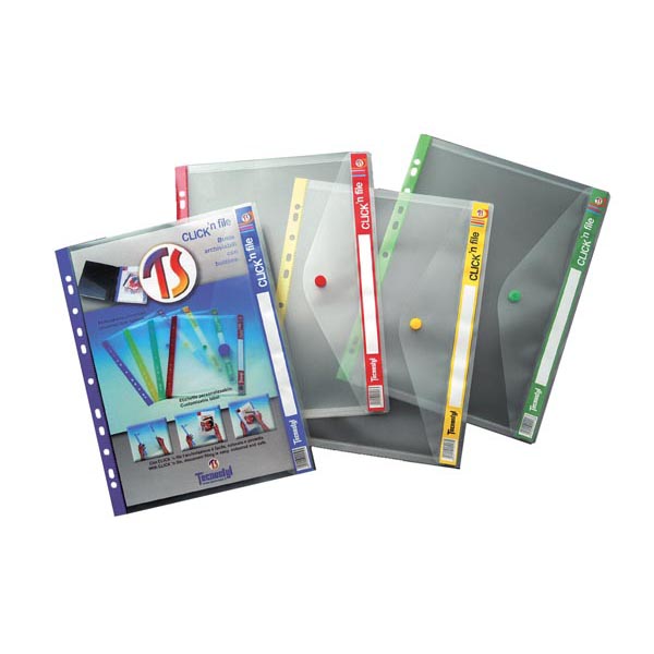 Buste forate con bottone Click’n File – 24×31 cm – verde – Tecnostyl – conf. 5 pezzi