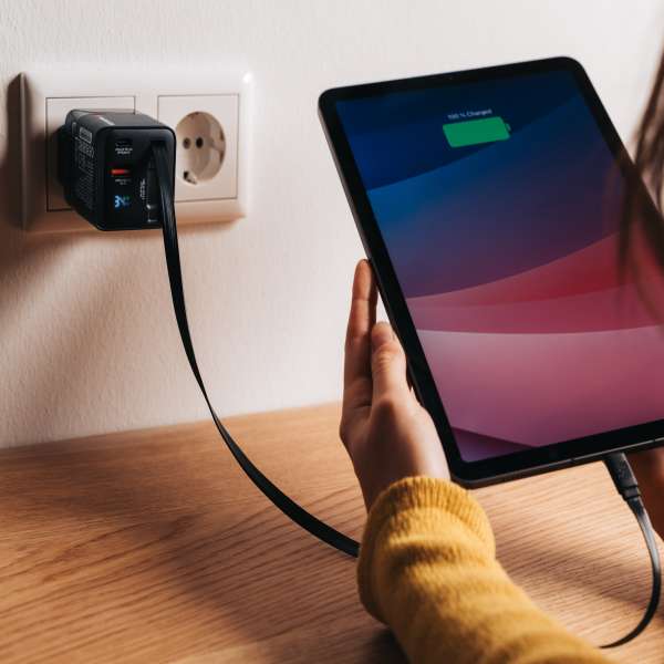 Caricabatterie da muro GaN da 65 W con cavo retrattile USB-C® PD da 65 W e 2 porte di uscita: 1 x USB-C PD da 65 W e 1 x USB-A QC 3.0 – 32217