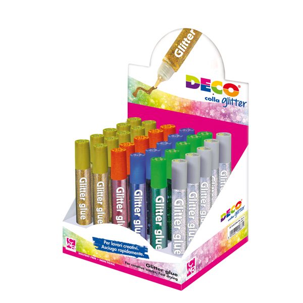 Colla glitter – 10,5 ml – colori assortiti metal – Deco – display 30 pezzi