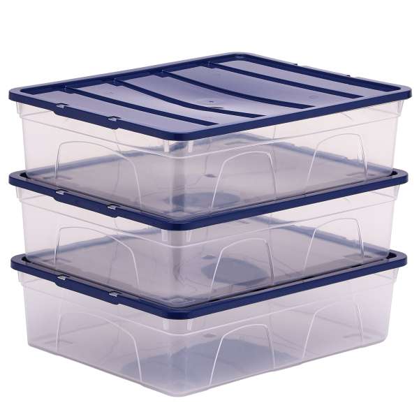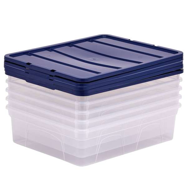Contenitori multiuso trasparente con coperchio blu, per organizzare il tuo spazio di lavoro o personale. Progettati per annidarsi l’una nell’altra quando sono vuote o per impilarsi quando sono piene. Il coperchio antipolvere, realizzato al 100% con plastica riciclata post-consumo, protegge il contenuto e le chiusure a scatto lo mantengono in posizione. I contenitori sono realizzati in polipropilene 100% privo di BPAe completamente riciclabile. – 100135769