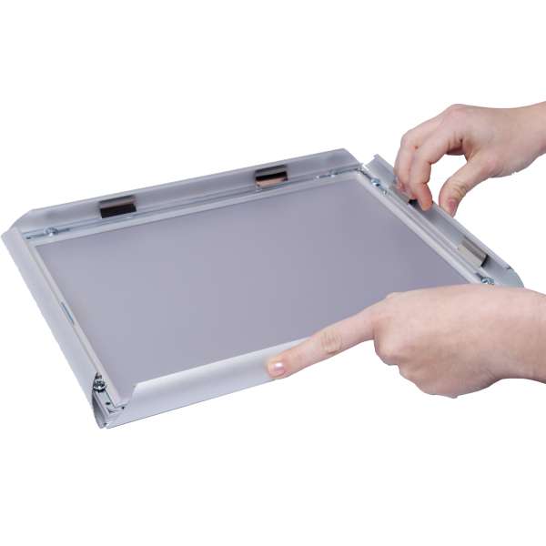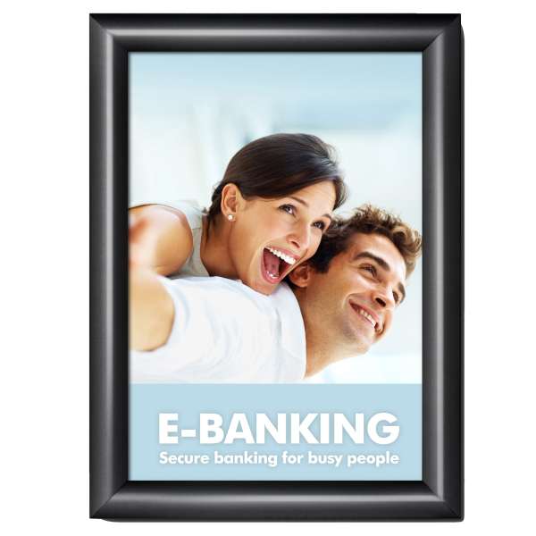 Cornice a scatto profilo nero A4. Profilo 25 mm con angoli smussati. Lamina per poster antiriflesso resistenete ai raggi UV – KRA3G25C9005