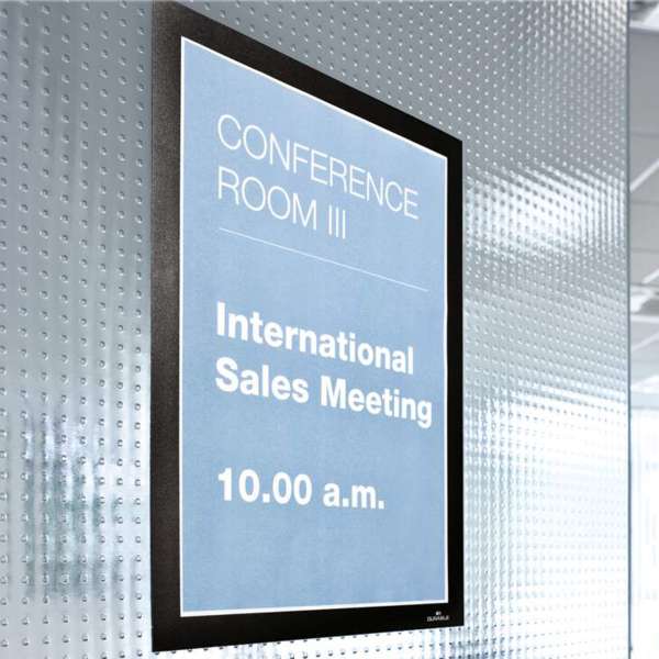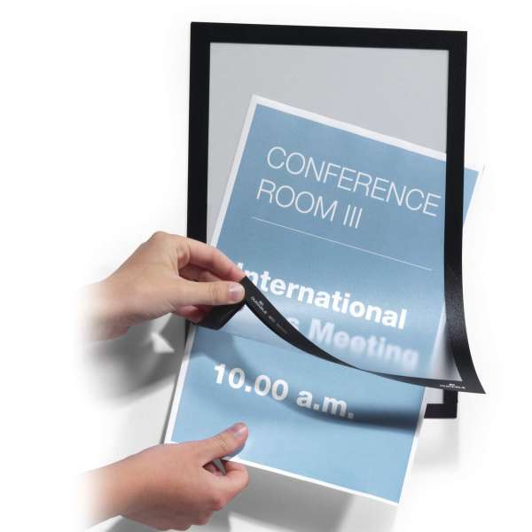 Cornice espositiva adesiva formato A4 • Presentazione ordinata e professionale di materiale informativo • Rapido inserimento e sostituzione dell’inserto grazie al pannello frontale magnetico • Può essere facilmente applicata su superfici lisce e rigide senza ausili ed è rimovibile dalle superfici come il vetro • Utilizzo: per documenti formato A4 ad es. per identificare stanze o esporre segnaletica e offerte • Su superfici vetrate l’inserto è leggibile fronte/retro • Aspetto della cornice identico da entrambi i lati • Può essere utilizzata sia in formato verticale che orizzontale • Dimensioni esterne: 236 x 323 mm – 4882-23