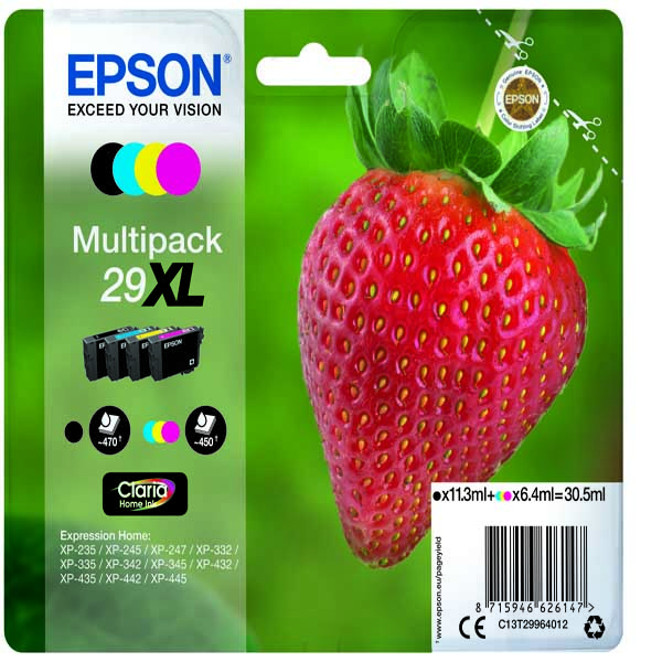 Epson – Confezione Cartuccia ink – 29XL – C/M/Y/K – C13T29964012 – C/M/Y 6,4ml cad – K 11,3ml