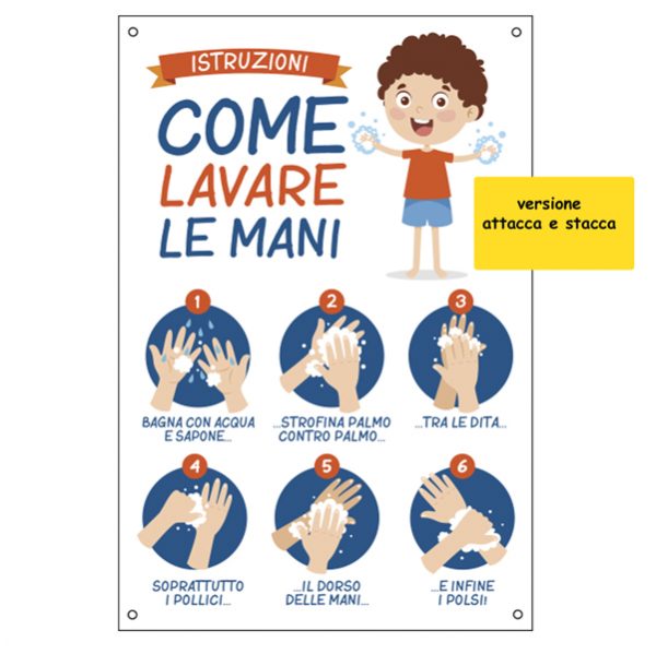 Etichetta autoadesiva – 20×30 cm – ISTRUZIONI COME LAVARE LE MANI – per bambini – Cartelli Segnalatori