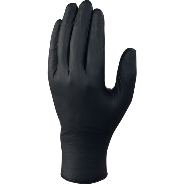 GUANTI MONOUSO in Nitrile non talcato. AQL 1,5. Impermeabilità all’aria e all’acqua. Flessibilità, elasticità e sensibilità al tatto. Nessun rischio di allergie. Leggera protezione contro i prodotti chimici (contatto sporadico). Colore nero per un’ottima resistente allo sporco. Guanto non talcato – V1450B10008