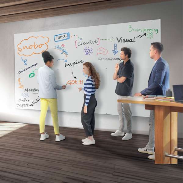 La lavagna a parete è ideale per le attività di collaborazione, come le sessioni di brainstorming e di pianificazione, in qualsiasi ambiente di lavoro. Semplice da installare, il sistema di montaggio magnetico permette ai pannelli senza cornice di stare insieme senza problemi sia in orientamento verticale che orizzontale. Le lavagne in acciaio hanno una superficie indurita dai raggi UV per una pulizia agevole e una finitura liscia e impeccabile. – 1915715