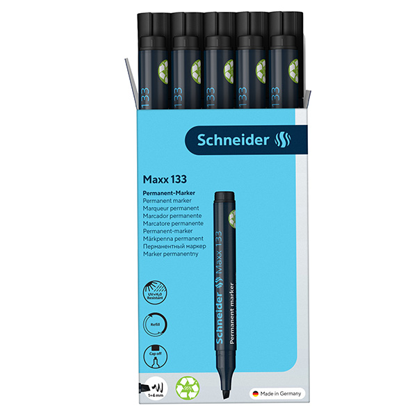 Marcatore permanente Maxx 133 – punta a scalpello – Tratto 1,00-4,00mm – nero – Schneider