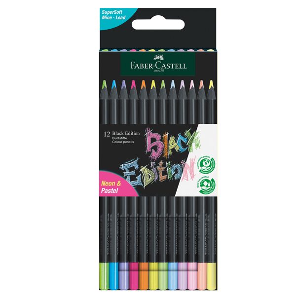 Matite triangolari Black Edition – pastel e neon – Faber-Castell – conf.12 pezzi