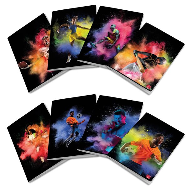 Maxiquaderno rilegato con punto metallico. Copertina in cartoncino da 205gr verniciatura UV. Risguardo personalizzabile stampato fronte e retro. Fantasie assortite 2023. – 02325965M