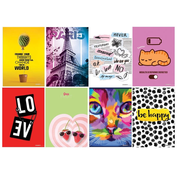 Maxiquaderni in edizione limitata 2022. Copertina in cartoncino con verniciatura UV da 200gr. Carta da 80 gr, 20+1 fogli con risquardo. Rilegatura con punto metallico. – 7916