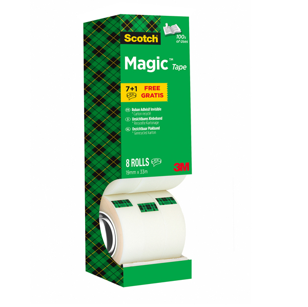Nastro adesivo Magic 810 – 19 mm x 33 m – acrilico – trasparente – Scotch – Value Pack 7+1 rotoli