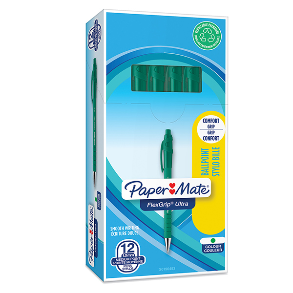 Penna a sfera a scatto Flexgrip Ultra – punta 1,0mm – verde – Papermate