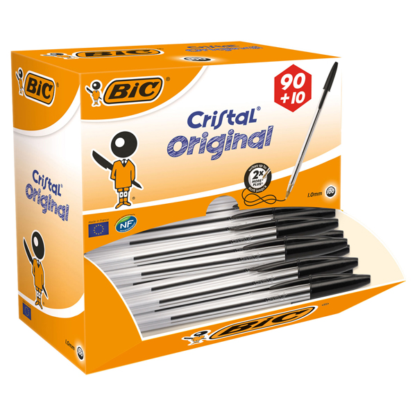 Penna a sfera Cristal – punta media 1,0mm – nero – Bic – conf. 90+10 pezzi