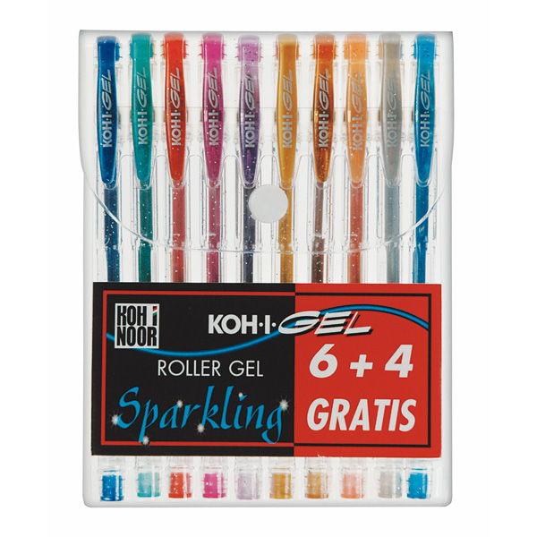 Roller gel colorati – colori glitter – Koh.I.Noor – astuccio 10 roller