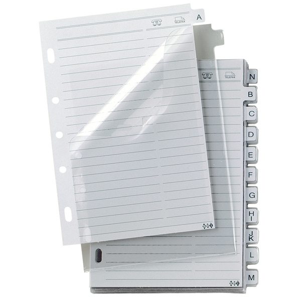 Ricambio rubrica A-Z, inserita in 22 buste in plastica cristallo più 2 intercalari. Formato 15×21. – 533000