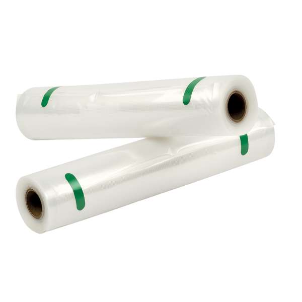 Rulli in PE realizzati in materiale BPA free di alta qualità, certificato per il contatto con gli alimenti. Compatibili con tutte le principali macchine per il sottovuoto in commercio. Sono adatti per la cottura in sottovuoto e possono essere scaldati, congelati, lavati, bolliti. Dimensione: 28x500cm – Apertura 28cm. – RVT5228