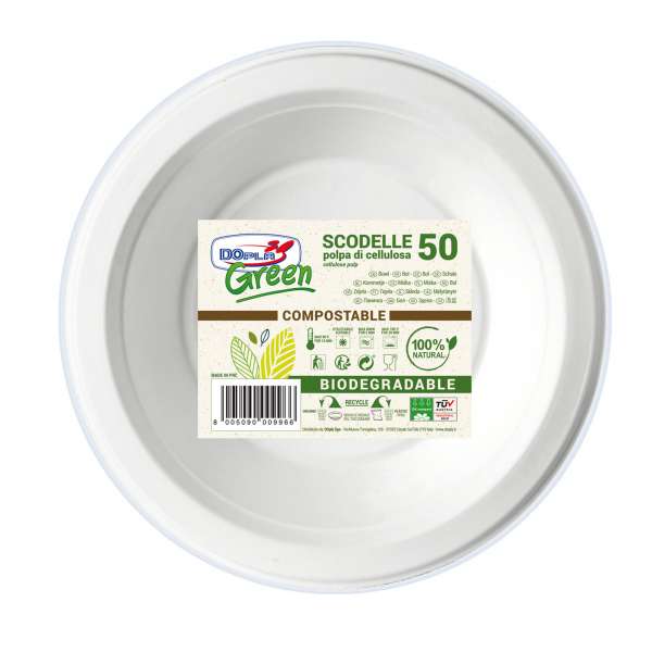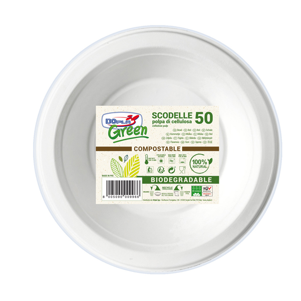 Scodella monouso – rotonda – 355 ml – cellulosa – bianco – Dopa Green – conf. 50 pezzi