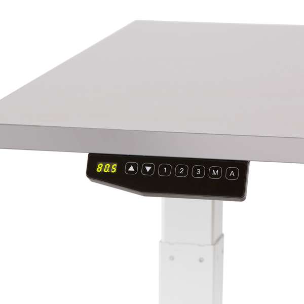 Scrivanie elettriche regolabili in altezza, che permettono all’utente di cambiare posizione per lavorare sia da seduto che in piedi. Sono la soluzione ideale per mantenere una corretta postura. Sistema motorizzato conforme alla norma EN61000-3- 3: 2013, progettato per rispondere alle esigenze lavorative. Il piano della scrivania è realizzato in melaminico da 25mm di spessore con bordo in PVC da 1mm. Struttura in tubo e lamiera d’acciaio, verniciata con finitura epossidica RAL 9003, colonna regolabile in altezza a due livelli ( altezza minima 715mm . massima 1160mm) tramite dispositivo elettrico. Piedini regolabili fino a 2 cm. Sistema di sollevamento con due colonne invertite. Controller elettrico con 4 memorie preimpostate. Altezza regolabile tramite un singolo motore. Cavo di alimentazione da 1,5m Gancio inferiore per appendere borse o altri oggetti. Portata massima 80kg. – V500007