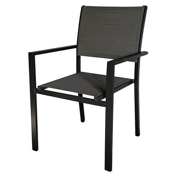 Sedia con struttura in alluminio verniciato. Schienale e seduta imbottiti in textilene. Portata massima: 120kg. Abbinabili ai tavoli Sardegna e Malta. – 760/60