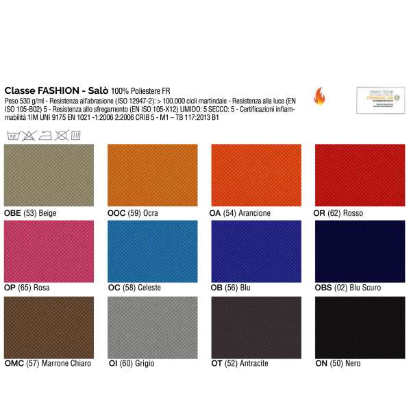 Seduta operativa girevole – elevazione a gas – meccanismo syncro – 4 blocchi anti shock – meccanismo a contatto permanente – Regolazione schienale up-down. Rivestimento seduta in tessuto “FASHION – Salò” 100% poliestere e certificazione di infiammabilità 1IM UNI 9175 EN 1021. Completa di braccioli regolabili. Alt.tot.: 114-125cm; Prof.tot.: 68cm; Alt.schienale: 60cm; Larg.schienale: 45cm; Larg.seduta: 46cm; Prof.Sedile: 46cm; Alt. sedile: 41-52cm. – EUP/BR3D/OMC