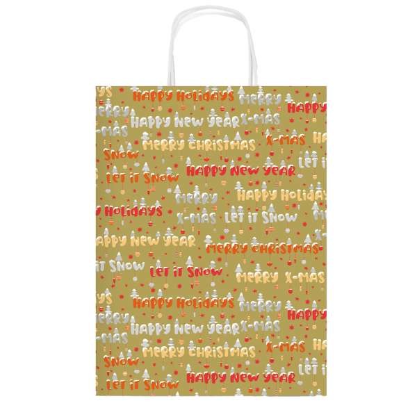 Shopper in carta kraft – con manici – 26 x 34,5 x 12 cm – fantasia natale – Rex Sadoch