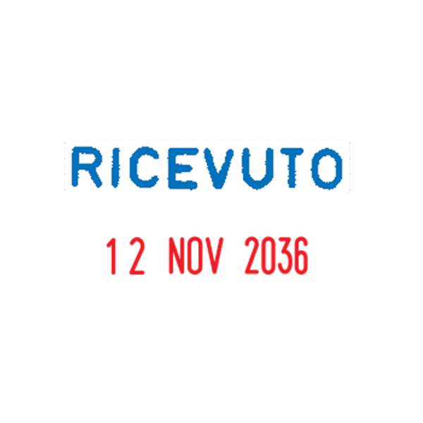Timbro mini datario con dicitura fissa RICEVUTO con caratteri alti 4mm. Fusto antiurto in ABS. Tampone inchiostro bicolore blu/rosso (cod 38126). Tampone ricambio nero E/10 (cod 38117). – S160/L2
