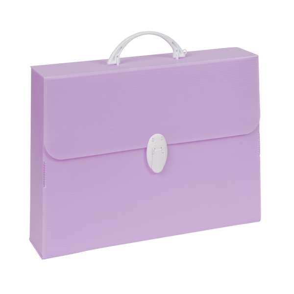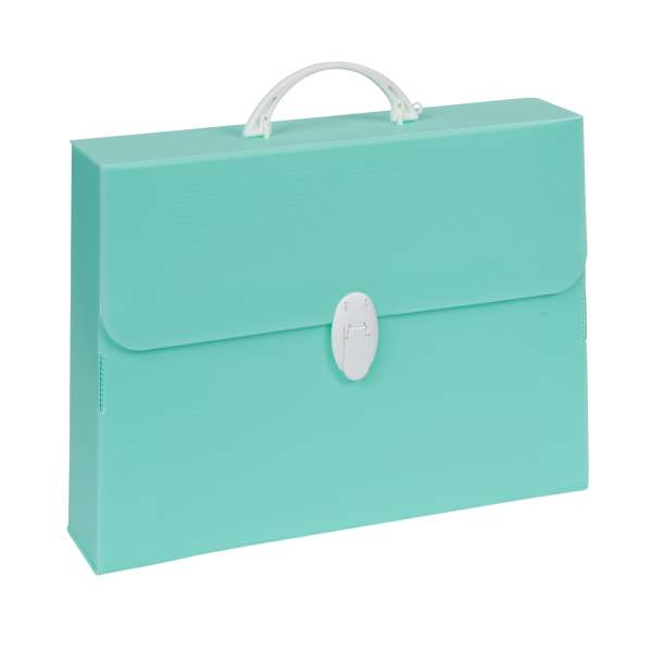 Valigetta in polipropilene alveolare colori pastello assortiti (azzurro, verde, lilla). Maniglia e chiusure in bianco. – 100501101