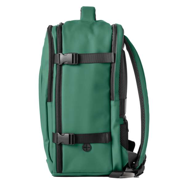 Zaino in gomma antipioggia, tasca frontale portachiavi e tasca frontale portadocumenti. Grande vano centrale con tasche porta accessori, presa esterna per cuffie. Tasca posteriore porta notebook 15”. Tasca posteriore e nastro per inserimento su trolley. Tracolle e schienale imbottite e dotato di maniglia di trasporto. Cinghie laterali per compressione. Bagaglio a mano approvato Ryanair. – 9237DRG24