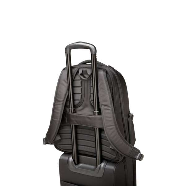 Lo schienale sagomato trasferisce il peso verso il baricentro, mentre le tasche appositamente posizionate distribuiscono il peso in maniera uniforme. Maniglie in simil pelle. Il poliestere balistico 1680 denari protegge da abrasioni, forature e lacerazioni. Scomparto di sicurezza per laptop con cerniera bloccabile resistente alla perforazione e protezione da caduta. Tasca di sicurezza RFID per impedire la scansione delle carte, dei passaporti qualsiasi cosa con un chip RFID. Scomparto principale imbottito per proteggere i dispositivi. Dotato di fascia di: Fissaggio al trolley, Tasca frontale con zip per un accesso veloce al contenuto, Portabottiglie integrato e Passaggio per gli auricolari. – K60382EU