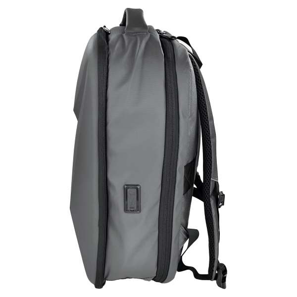 Zaino doppio scomparto in PU con fronte rigido in ABS antiurto. Due scomparti interni espandibili con tasca imbottita per notebook 15.6″. Spallacci imbottiti traspiranti, regolabili. Fascia posteriore per trolley e tasca sicurezza per documenti. Presa Usb e Usb-c per powerbank. Tasca laterale. Dimensioni: 30x42x15cm – 82127